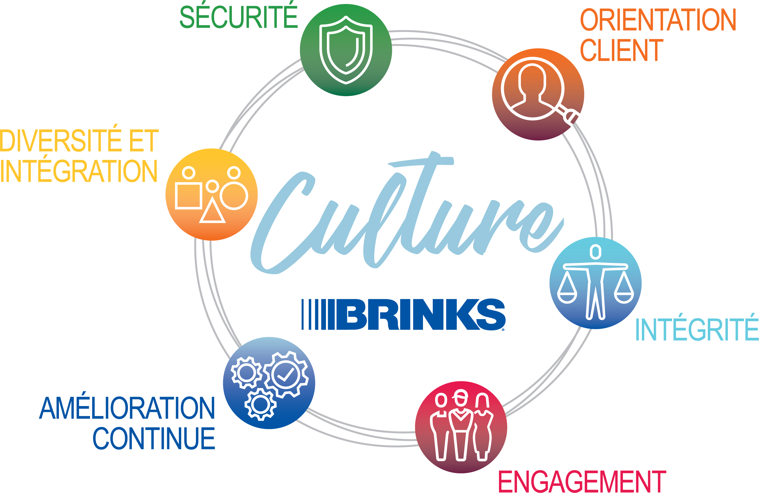 Chez Brink’s, vivre au quotidien nos valeurs de sécurité, d’orientation client, d’intégrité, d’engagement et d’amélioration continue fait la différence pour nos employés et nos clients. Nos valeurs garantissent que nous travaillons en toute sécurité pour nous protéger et protéger les autres, que nous proposons des solutions efficaces, que nous appliquons toujours les normes éthiques les plus strictes et que nous utilisons les technologies pour obtenir des résultats.